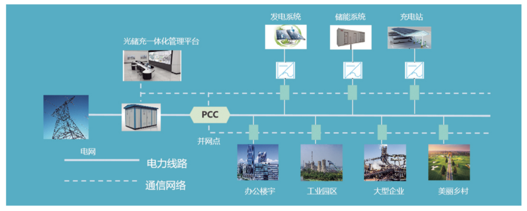 双碳目标和以新能源为主体的新型电力系统的构建提出,以清洁、低碳、绿色的方式满足能源使用需求,促进多能协同互补模式的形成,加强综合能源高效利用,促进新能源的消纳,光储充一体化管理成为能源低碳化的强有力支撑工具。通过将光伏发电、储能、电动汽车充电、能量管理等要素进行部署,能够实现发电、充/放电、储能“三位一体”。